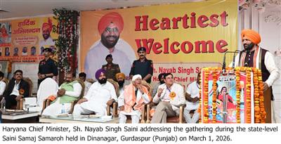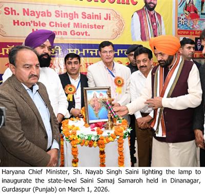 Chandigarh, March 1 – Haryana Chief Minister Sh. Nayab Singh Saini, while addressing a programme organised by the Saini Samaj at Dinanagar in Gurdaspur district of Punjab on Sunday, said that Punjab is the sacred land of the Gurus, sacrifice and martyrdom. He said that even after suffering the trauma of Partition, the people of Punjab refused to succumb to despair and turned self-belief into their greatest strength.