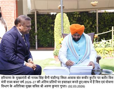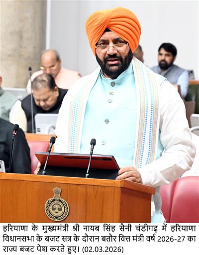 Chandigarh, March 2- Reaffirming the State’s long-term development roadmap, Haryana Chief Minister, Sh. Nayab Singh Saini, who also holds the portfolio of Finance Minister, on Monday presented the 12th consecutive State Budget of the government during the ongoing session of State Vidhan Sabha. While presenting the State budget 2026-27, the Chief Minister reiterated his government's firm commitment to transform Haryana into a one trillion dollar economy by 2047.