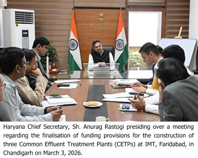 Chandigarh, March 3 : In a significant step towards strengthening environmental infrastructure and promoting sustainable industrial growth, the Haryana Government will begin construction of three Common Effluent Treatment Plants (CETPs) in Faridabad. The projects aim to ensure scientific treatment of industrial wastewater and improve ecological standards in rapidly developing industrial sectors.