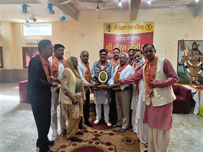 चण्डीगढ़, 03.03.26- : श्री ब्राह्मण सभा, चण्डीगढ़ ने भगवान परशुराम भवन, सैक्टर 37 सी में नवनिर्वाचित महापौर सौरभ जोशी को सम्मानित किया। सभा के प्रधान यशपाल तिवारी ने स्वागत उद्बोधन में बताया कि सौरभ जोशी ने महापौर नियुक्त होते ही अपनी कार्यशैली से उस समय नगर निवासियों को अवगत करा दिया जब शुरुआत में ही नगर निगम के कार्यालय में जनता दरबार लगाया। पहले महीने में ही गतिविधियों को तीव्रता देने का प्रमाण प्रस्तुत कर के शंखनाद कर दिया। महापौर सौरभ जोशी ने कहा कि वे विशेष रूप से भवन में भगवान परशुराम जी का आशीर्वाद प्राप्त करने हेतु उपस्थित हुए हैं। इस अवसर पर सभा के पदाधिकारियों एवं कार्यकारी सदस्यों केअतिरिक्त महिला संकीर्तन मंडली अपनी प्रधान श्रीमती कृष्ण शुक्ला के साथ उपस्थित रहे। पूर्व महापौर रवि कांत शर्मा, पूर्व वरिष्ठ उप महापौर अनिल दुबे, वरिष्ठ भाजपा नेता हरि शंकर मिश्रा, सभा के वरिष्ठ उप प्रधान जीवन कुमार शर्मा, उप प्रधान प्रदीप शर्मा ने सौरभ जोशी के साथ अपने पुराने पारिवारिक संबंध भी साझा किए।