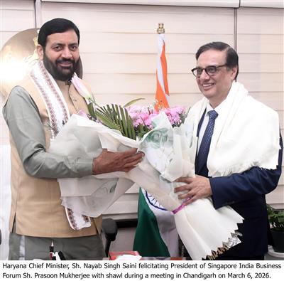 Chandigarh, March 6 — The President of the Singapore India Business Forum, Sh. Prasoon Mukherjee met Haryana Chief Minister, Sh. Nayab Singh Saini on Friday. During the meeting, detailed discussions were held regarding industrial investment in Haryana, trade cooperation, and opportunities available for Singaporean companies in the state.