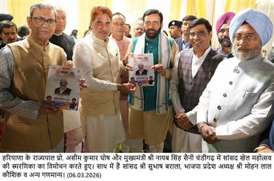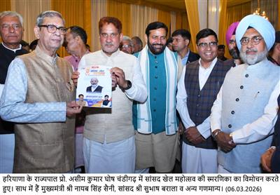 Chandigarh, March 6— Haryana Governor, Prof. Ashim Kumar Ghosh and Chief Minister Sh. Nayab Singh Saini on Thursday jointly released a souvenir of Sansad Khel Mahotsav to be held in the Sirsa Parliamentary Constituency.