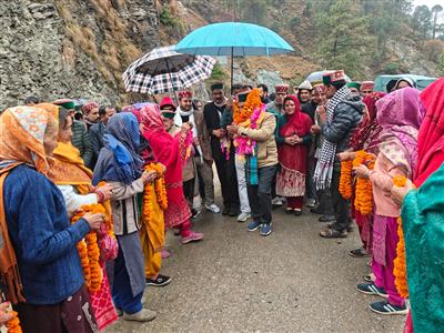 मूसलाधार बारिश के बीच भी धारकण्डी के लोगों ने बड़ी गर्मजोशी के साथ उनका भव्य स्वागत किया।