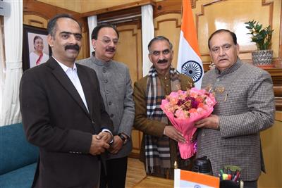 सदन की कार्यवाही आरम्भ होने से पूर्व हि0प्र0 के मुख्यमंत्री ठाकुर सुखविन्दर सिंह सुक्खू ,हि0प्र0 विधान सभा अध्यक्ष कुलदीप सिंह पठानियां से शिष्टाचार भेंट करते हुए। इस अवसर पर संसदीय कार्य मंत्री हि0प्र0 हर्षवर्धन चौहान तथा ग्रामीण विकास एवं पंचायती राज मंत्री अनिरूद्व सिंह भी मौजूद थे।