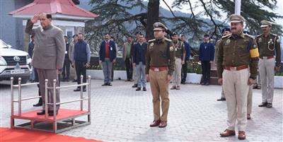 SHIMLA, 18.03.26-14वीं विधान सभा के 11वें सत्र के दूसरे चरण के प्रथम दिन की कार्यवाही का संचालन करने विधान सभा सचिवालय पहुँचे हि0प्र0 विधान सभा अध्यक्ष कुलदीप सिंह पठानियां गेट नं0 1 पर सलामी लेते हुए। गौरतलब है कि यह वर्तमान सरकार का चौथा बजट सत्र है।