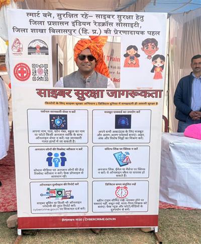 बिलासपुर 21 मार्च: राज्य स्तरीय नलवाड़ी मेला के अवसर पर इंडियन रेड क्रॉस सोसाइटी, जिला शाखा बिलासपुर द्वारा साइबर सेफ्टी एवं सीपीआर जागरूकता को बढ़ावा देने के उद्देश्य से एक विशेष प्रदर्शनी का आयोजन किया जा रहा है। इस प्रदर्शनी के माध्यम से आमजन को डिजिटल युग में सुरक्षित रहने के प्रति जागरूक किया जा रहा है। प्रदर्शनी में एक विशेष सेल्फी कॉर्नर भी स्थापित किया गया है, जहां लोग साइबर सुरक्षा से संबंधित संदेशों के साथ फोटो लेकर सुरक्षित डिजिटल व्यवहार अपनाने के लिए प्रेरित हो रहे हैं।
