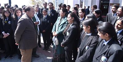 शिमला, 24.03.26-: आज पूर्वाह्न 10:30 बजे ऑकलैंड हाऊस स्कूल लक्कड़ बाजार शिमला तथा हि0प्र0 विश्व विद्यालय विधि विभाग के छात्र – छात्राओं ने हि0प्र0 विधान सभा सचिवालय पहुँचकर कौंलिस चैम्बर के बाहर हि0प्र0 विधान सभा अध्यक्ष कुलदीप सिंह पठानियां से मुलाकात की। इस अवसर पर विधान सभा अध्यक्ष ने उन्हें संसदीय प्रणाली, देश के अन्दर विद्यमान लोकतांत्रिक व्यवस्था, विधान सभा, लोक सभा तथा राज्य सभा की कार्यप्रणाली की विस्तृत जानकारी दी। छात्र – छात्राओं को अवगत करवाते हुए पठानियां ने कहा कि बड़े प्रदेशों में विधान परिषदों का भी प्रावधान है। हि0प्र0 छोटा राज्य होने के नाते यहाँ पर विधान परिषद नहीं है।
