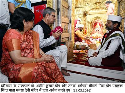 Interacting with the media persons on the occasion, the Governor remarked that the day marks an extremely auspicious moment, with a large number of devotees thronging the Mata Mansa Devi Temple to offer prayers and seek darshan of the Goddess. He stated that he had visited the temple along with his wife as a devotee of Maa Mansa and had prayed for the welfare and prosperity of the people of the country and the State.