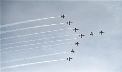 During the show, the aerobatic team performed a series of exciting aerial manoeuvres that thrilled the audience. The aircraft flew in well-coordinated patterns, demonstrating excellent teamwork and control. The pilots executed crossings, smooth separations, steep climbs and other eye-catching movements. They also performed loops, rolls, and flew in challenging positions, displaying great skill and confidence. The overall display was lively and entertaining, keeping spectators engaged throughout and highlighting precision and teamwork.