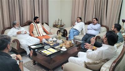 Chandigarh, March 28: Haryana Chief Minister, Sh.Nayab Singh Saini today visited the residence of the State’s Energy, Transport, and Labour Minister, Anil Vij, in Ambala Cantonment to inquire about his well-being and wish him a speedy recovery.