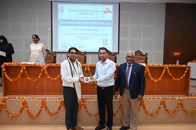 MAHENDERGARH, 29.03.26-The School of Law, Central University of Haryana (CUH), Mahendergarh marked a historic milestone as it hosted the inaugural session of its first-ever National Moot Court Competition. The event witnessed the presence of distinguished dignitaries, including Prof. Anand Sharma, Director of the Centre for Indian Knowledge System, who graced the occasion as the Chief Guest, and Mr. Rakesh Mehta, Senior Advocate, District Court Narnaul, as the Guest of Honour. Prof. Tankeshwar Kumar, Hon’ble Vice Chancellor, applauded the efforts of the organizers and conveyed his best wishes to all participating teams.
