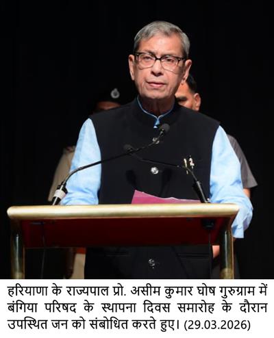 CHANDIGARH, 29.03.26-हरियाणा के राज्यपाल प्रो. असीम कुमार घोष गुरुग्राम में बंगिया परिषद के स्थापना दिवस समारोह का दीप प्रज्वलित कर शुभारम्भ करते हुए।
