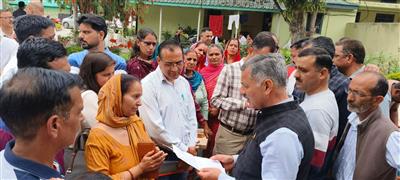 घुमारवीं (बिलासपुर), 03 अप्रैल: नगर व ग्राम नियोजन, आवास, तकनीकी शिक्षा, व्यावसायिक एवं औद्योगिक प्रशिक्षण मंत्री राजेश धर्माणी ने आज लोक निर्माण विभाग विश्राम गृह घुमारवीं में जन समस्याएं सुनीं तथा अधिकतर का मौके पर ही निपटारा कर दिया। उन्होंने लंबित समस्याएं को समयबद्ध निपटारा सुनिश्चित बनाने के लिए संबंधित विभागीय अधिकारियों को निर्देश जारी किये।