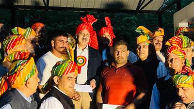 भराड़ी, 4 अप्रैल 2026-अजमेरपुर ग्रीष्मोत्सव भराड़ी के समापन समारोह में प्रदेश सरकार के तकनीकी शिक्षा मंत्री राजेश धर्माणी मुख्य अतिथि के रूप में उपस्थित रहे। इस अवसर पर मेला कमेटी द्वारा उनका पारंपरिक तरीके से भव्य स्वागत और सम्मान किया गया।