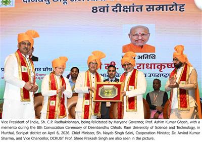 Chandigarh, April 6 – The Vice President of India, Sh C.P. Radhakrishnan, addressed the 8th convocation of Deenbandhu Chhotu Ram University of Science and Technology, Sonipat, Haryana, today.