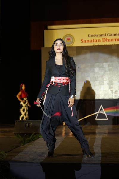 The event commenced with a green welcome ceremony symbolizing growth and positivity, followed by an inspiring address by Registrar Mr. Ashutosh Sharma, and a graceful Vandana performance. Students presented a diverse range of innovative collections inspired by themes such as heritage crafts, modern femininity, architecture, nature, and cultural fusion.