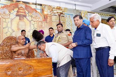 इस अवसर पर पंजाब के राज्यपाल एवं चण्डीगढ़ के प्रशासक गुलाब चंद कटारिया व मंदिर सभा के अध्यक्ष अध्यक्ष धर्म बहादुर जैन की अगुआई में मंदिर समिति के सभी सदस्यों ने उनका हार्दिक स्वागत किया। पारंपरिक विधि से उनके पावन चरणों का अभिषेक (चरण वंदना) किया गया एवं आरती अर्पित की गई। इस अवसर पर श्री पार्श्नाथ दिगम्बर जैन मंदिर पंचकूला के अध्यक्ष किशोरी लाल जैन, श्वेताम्बर जैन मंदिर सेक्टर 2, चंडीगढ़ से मंत्री प्रदीप जैन, एसएस जैन सभा सेक्टर 18, चंडीगढ़ से अध्यक्ष विजय जैन एवं समस्त दिगम्बर जैन सोसाइटी कार्यकारिणी उपस्थित थी। अम्बाला से भी 55 श्रद्धालु सभा में उपस्थित हुए। मंच संचालन एडवोकेट आदर्श जैन ने किया। कार्यक्रम की समाप्ति के बाद अल्पाहार का आयोजन किया गया।