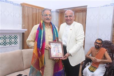 SHIMLA-10th April, 2026-Governor Kavinder Gupta today visited Dharmasangh Mahavidyalaya at Civil Lines, New Delhi and paid obeisance to revered saint and Mata Lalita devotee, Pujya Swami Abhishek Brahmachari Ji.