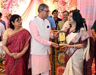Governor Prof Ashim Kumar Ghosh and Lady Governor Smt Mitra Ghosh also released Apabrinu, annual magazine of Kalibari and felicitated its editorial team. Prominent among those who also graced the occasion included Swami Shantatmananda Ji; Swami Bhitiharananda Ji; Swami Tanmahimananda; PS to Governor Shri Shankha Chatterjee; Shri Pranob Sen, President, Kalibari, Smt Amrita Ganguly, in-charge, Ramakrishna Temple, Shri Rajesh Roy, General Secretary, Kalibari, Shri BK Chatterjee, Treasurer, Kalibari and other distinguished guests.