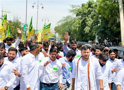 चंडीगढ़, 16 अप्रैल। जननायक जनता पार्टी के युवा प्रदेश अध्यक्ष दिग्विजय सिंह चौटाला ने कहा है कि शिक्षण संस्थानों में भाजपा और आरएसएस की तानाशाही नहीं चलेगी। उन्होंने कहा कि वैचारिक रूप से युवाओं को कमजोर करने की सोच भाजपा और आरएसएस रखती है और एजेंडे के तहत जात पात के नाम पर विद्यार्थियों को बांटने का काम किया जा रहा है, जिसे किसी सूरत में बर्दाश्त नहीं किया जाएगा। दिग्विजय ने कहा कि शिक्षण संस्थानों में छात्रों को शिक्षा संबंधी सुविधाएं देने की बजाय छात्रों को टारगेट किया जा रहा है। वीरवार को दिग्विजय चौटाला हिसार में इनसो के छात्र संवाद कार्यक्रम के दौरान पत्रकारों से रूबरू थे। इससे पहले दिग्विजय चौटाला के नेतृत्व में भारी संख्या में युवाओं ने छात्रों की विभिन्न मांगों को लेकर गुरु जंभेश्वर विश्वविद्यालय में जोरदार विरोध प्रदर्शन किया और वीसी कार्यालय का घेराव करते हुए प्रशासन को चेताया। दिग्विजय ने ये भी कहा कि वे जल्द महामहिम राज्यपाल से भी मुलाकात करेंगे और उनके समक्ष प्रदेश के विश्वविद्यालयों के खराब हालात बयां करेंगे।