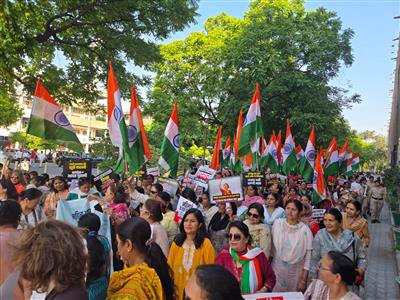During the padyatra, women expressed their anger through slogans and sent a clear message that no compromise will be accepted on the rights of half the population of the country. They stated that the Nari Shakti Vandan Adhiniyam is not just a bill but a historic step towards empowering women, and opposing it is equivalent to opposing women’s empowerment.