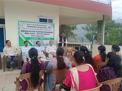 मंडी, 28 अप्रैल। हिमाचल प्रदेश फसल विविधीकरण प्रोत्साहन परियोजना के अंतर्गत खंड परियोजना प्रबंधन इकाई (बीपीएमयू) मंडी द्वारा आजीविका गतिविधियों के तहत बग्गी में संचालित निटिंग प्रशिक्षण कार्यक्रम संपन्न हो गया। लगभग साढ़े चार माह तक चले इस प्रशिक्षण में 8 प्रशिक्षुओं ने भाग लेकर आधुनिक तकनीकों एवं व्यावहारिक कौशल का प्रशिक्षण प्राप्त किया। प्रशिक्षण उपरांत सभी प्रशिक्षुओं को परियोजना की ओर से टूलकिट (निटिंग मशीन) प्रदान की गई, ताकि वे स्वरोजगार शुरू कर अपनी आजीविका को सुदृढ़ बना सकें।