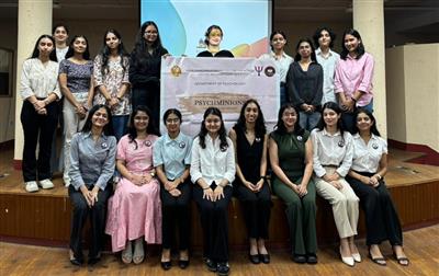 The Induction ceremony of Psychminions- the Psychology Society featured an introductory video highlighting the society’s objectives and achievements, an experiential workshop on ‘Emotional Self-Regulation through Creative Expression’, and a presentation on ‘Ubuntu- I am because we are’. Ms. Ravtesh Kaur, Psychologist, Expressive Arts Therapist, and an alumna of the college, conducted the workshop that guided students through relaxation, body movement, and expressive art activities to help them explore and process emotions creatively.