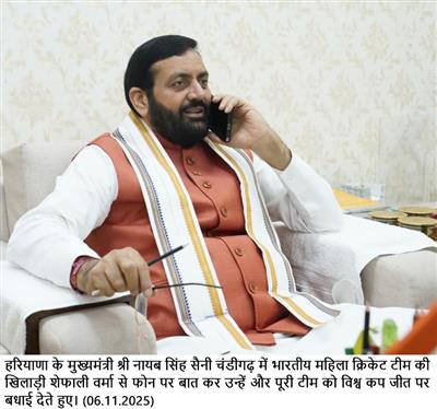 Chandigarh, November 6 - Haryana Chief Minister Nayab Singh Saini today spoke with women’s cricket team star Shefali Verma, a proud daughter of Haryana, and congratulated her on India’s victory in the Women’s Cricket World Cup. The Chief Minister also commended her stellar performance as Player of the Match in the final.