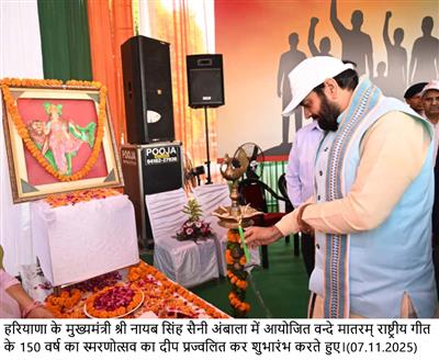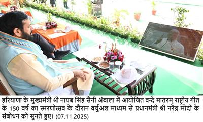 Sh. Nayab Singh Saini called upon everyone to take a pledge to make India a developed nation under the dynamic leadership of Prime Minister, Sh. Narendra Modi. Extending greetings once again on the 150th anniversary of Vande Mataram, the Chief Minister paid homage to all known and unknown heroes who sacrificed their lives for India’s freedom and its protection. Vande Mataram is the soul of our nation, our pride, our identity, he said.