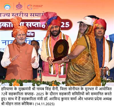Chandigarh, November 14 – Haryana Chief Minister Sh Nayab Singh Saini inaugurated the 72nd State-Level Cooperative Week in Sonipat on Friday. Addressing the gathering, he said that the soul of India resides in its villages and that the path to progress lies through cooperation. He said that this year is being celebrated as the Year of Cooperatives, and the event will play a key role in achieving the vision of prosperity through cooperation and self-reliance. The Chief Minister urged the youth to shed traditional mindsets, form cooperatives, and transform them into global brands through the power of Digital India.
