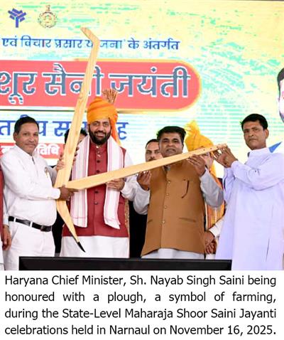 The Chief Minister was addressing the state-level Maharaja Shoor Saini Jayanti ceremony in Narnaul as the Chief Guest. Prior to this, he inaugurated and laid the foundation stones of 19 development projects worth Rs 84 crore.