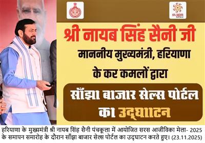 On this occasion, Chief Minister Sh Nayab Singh Saini launched two online portals of the Haryana State Rural Livelihood Mission-the Swaapan Digital Gram Bazar Portal and the Sanjha Bazaar Sales Portal.