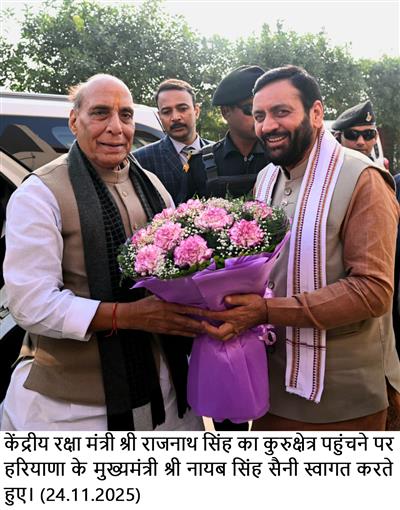 Chandigarh, November 24 — On the auspicious occasion of the grand inauguration of the International Gita Mahotsav in Kurukshetra, Defence Minister Sh. Rajnath Singh said the Haryana Pavilion is a mirror of Haryanvi culture. He stated that the pavilion showcases the state’s rich folk arts and cultural heritage. Through the Haryana Pavilion, Kurukshetra University is making a commendable contribution towards the promotion and preservation of Haryanvi culture. The officials of Kurukshetra University deserve appreciation for this remarkable effort.