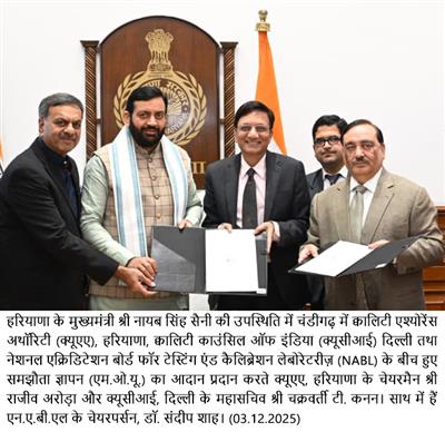 The MoU signed with NABL aims to make the State’s laboratory testing system more reliable and transparent. NABL-accredited laboratories operate on national and international standards. As a result, test reports for government projects in Haryana will now be more scientifically accurate and trustworthy. This agreement will strengthen departmental monitoring capabilities, reduce errors in testing, and support timely completion of projects. It will also make the State’s laboratory ecosystem more robust, transparent, and accountable.