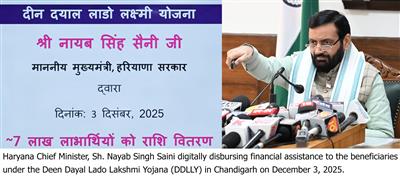 Chandigarh, Dec 3 — Haryana Chief Minister Sh Nayab Singh Saini today released the second installment of the Deen Dayal Lado Laxmi Yojana. With today’s disbursement, approximately Rs 148 crore has been transferred to the accounts of 7,01,965 beneficiary women.