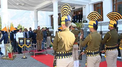 1. Chief Minister Thakur Sukhvinder Singh Sukhu being given Guard of Honour by a contingent of Himachal Pradesh Police at Vidhan Sabha Complex Tapovan near Dharamshala in Kangra district on 5th December 2025.