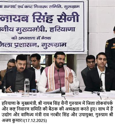 Chandigarh, December 17— Haryana Chief Minister, Sh. Nayab Singh Saini underlined that public service is the very foundation of good governance and directed officers to ensure that every citizen approaching government offices with a grievance returns with dignity and satisfaction. He emphasized that prompt, transparent and sensitive redressal of public complaints is not merely an administrative duty but a moral responsibility that must be accorded top priority.