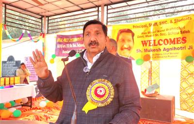 वे गुरुवार को हरोली विधानसभा क्षेत्र के सलोह स्थित बन बिहारी नंद ब्रह्मचारी राजकीय वरिष्ठ माध्यमिक पाठशाला के वार्षिक पुरस्कार वितरण समारोह में मुख्य अतिथि के रूप में संबोधित कर रहे थे।