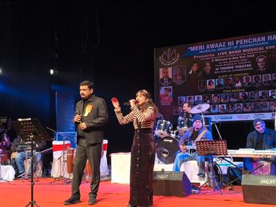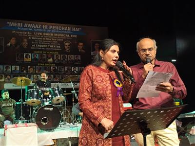 चण्डीगढ़ : टैगोर थिएटर में मेरी आवाज ही पहचान है संस्था की ओर से गीत-संगीत की एक शाम का आयोजित की गई। संस्था की ओर से नए साल के स्वागत के साथ अपनी दूसरी वर्षगांठ के मौके पर इस कार्यक्रम का आयोजन किया गया जिसमें संस्था के संचालकों संजीत शर्मा और सुनीता धीमान, म्यूजिक अरेंजर सुरिंदर शेरी सहित मुख्य अतिथि डॉ. राजिंदर कौर, विशिष्ट अतिथि जय काम्बोज निदेशक, साधना संगर आदि मौजूद रहे। कार्यक्रम की शुरुआत में नृत्य की प्रस्तुति नैंसी ने दी।