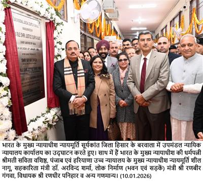 Chandigarh, January 10 — The Hon’ble Chief Justice of India, Justice Surya Kant, stated that a Sessions Division will be established soon in Hansi. After Hansi was declared the 23rd district of the State, this will provide another important facility for the residents of Hansi. The Sessions Division will play a significant role in strengthening access to justice for the general public.
