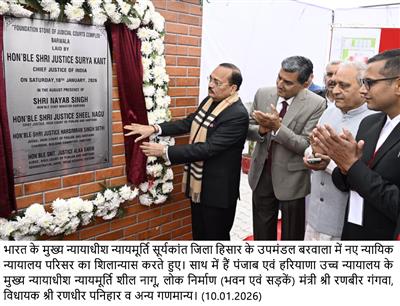 Chandigarh, January 10 — Chief Justice of India Justice Surya Kant said that courts are being established closer to the people so that everyone can receive speedy justice. He emphasized that the nearer the courts are, the easier it becomes for citizens to fight for the protection of their rights.