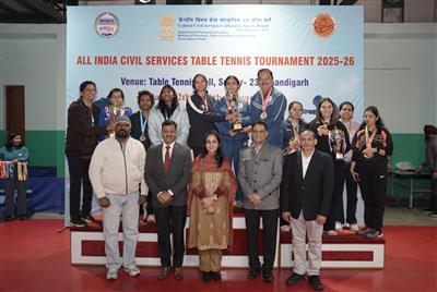 चंडीगढ़, 17 जनवरी 2026-चंडीगढ़ खेल विभाग द्वारा आयोजित अखिल भारतीय सिविल सेवा टेबल टेनिस टूर्नामेंट 2025–26 का समापन आज सेक्टर-23 स्थित टेबल टेनिस हॉल में पुरस्कार वितरण समारोह के साथ सफलतापूर्वक संपन्न हुआ।