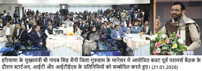 Chandigarh, January 21 — Haryana Chief Minister Sh. Nayab Singh Saini, while interacting with startup founders and entrepreneurs during a pre-budget consultation programme held today in Manesar, said that young innovators and startups are giving a new direction to Haryana’s economy.