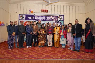 धर्मशाला, 25 जनवरी: बी.एड कॉलेज धर्मशाला के सभागार में आज रविवार को राष्ट्रीय मतदाता दिवस के उपलक्ष्य पर जिला स्तरीय कार्यक्रम का आयोजन किया गया। कार्यक्रम में बतौर मुख्यातिथि शिरकत करते हुए अतिरिक्त उपायुक्त विनय कुमार ने लोकतंत्र की सफलता में निर्वाचन के महत्व बारे बताया। उन्होने मतदाता दिवस की थीम ‘माई इण्डिया, माय वोट’ पर चर्चा की। उन्होंने मतदाताओं को मतदान के लिए प्रेरित करते हुए बिना किसी प्रलोभन के स्वतंत्र, निष्पक्ष व निर्भीक होकर सभी चुनावों में मतदान करने की शपथ दिलाई। मुख्य अतिथि ने सभागार में उपस्थित नए मतदाताओं को वोटर कार्ड देकर सम्मानित किया। उन्होंने जिले के समस्त मतदाताओं से अपील की, कि भारत के लोकतन्त्र को सृदुढ़ करने के लिए लोकसभा और विधानसभा निर्वाचनों की फोटोयुक्त मतदाता सूचियों में अपना नाम अवश्य दर्ज करवाऐं तथा प्रत्येक निर्वाचन में मतदान करके लोकतान्त्रिक प्रणाली को मजबूत बनाने के लिए अपना सहयोग दें।