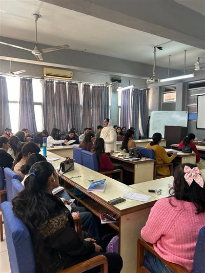 The programme was organized with the objective of promoting emotional well-being, mental strength, and creativity among students and staff members of the college. The event witnessed enthusiastic participation from students, faculty members, and non-teaching staff. The programme commenced with a warm welcome of the resource person by Mr. Ashutosh Sharma, Registrar, who appreciated the efforts of the club. The session was conducted by BK Madhu, Resource Person, who shared valuable insights on emotional balance, stress management, self-awareness, and positive thinking. Through interactive discussions and practical examples, the speaker emphasized the importance of inner peace and spiritual values in enhancing creativity and personal growth. The resource person guided the participants on developing resilience in academic and professional life and encouraged them to adopt mindfulness and self-discipline to overcome challenges.