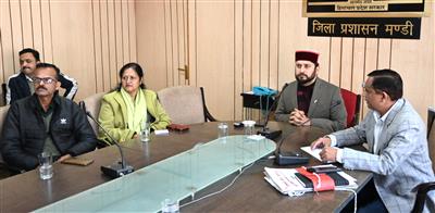 मंडी, 31 जनवरी। उपायुक्त मंडी अपूर्व देवगन की अध्यक्षता में जिला पेयजल एवं स्वच्छता मिशन की मासिक बैठक आयोजित की गई, जिसमें जल जीवन मिशन के अंतर्गत जिला में चल रही पेयजल योजनाओं के समयबद्ध निर्माण, जल गुणवत्ता, जन भागीदारी तथा जल-जनित रोगों की रोकथाम को लेकर विस्तृत चर्चा की गई। उपायुक्त ने जिला मंडी में कार्यरत सभी अधिशासी अभियंताओं को निर्देश दिए कि सभी पेयजल योजनाओं का निर्माण निर्धारित समय अवधि के भीतर सुनिश्चित किया जाए तथा भारत सरकार के जल शक्ति मंत्रालय द्वारा जारी दिशा-निर्देशों की सख्ती से अनुपालना की जाए।
