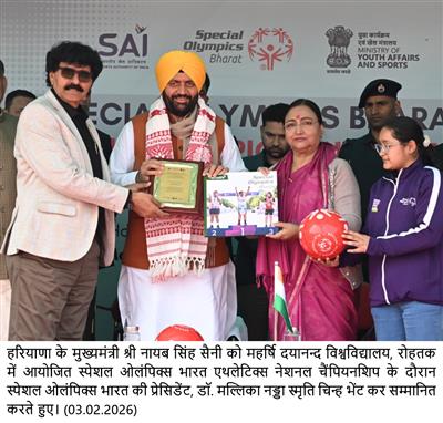 The Chief Minister was addressing the inaugural function of the Special Olympics Bharat Athletics National Championship held on Tuesday at Maharshi Dayanand University, Rohtak. More than 500 athletes, along with their coaches and support staff from 26 states, are participating in this championship.