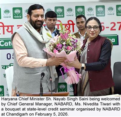 Chandigarh, February 5 — Haryana Chief Minister Sh. Nayab Singh Saini, while addressing the State Level Credit Seminar organized by NABARD, said that Haryana has played a significant role in the country’s food security. However, with changing times, agriculture and the rural economy are facing several new challenges, including declining groundwater levels, deterioration of soil health, shrinking landholdings, climate change and rising cost of production. He emphasized that these challenges cannot be addressed through conventional methods alone, but require innovation, technology and strong institutional financial support.