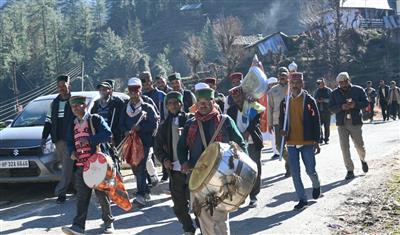 परंपरागत वाद्य यंत्रों की देवधुन की मधुर स्वर लहरियों के साथ बड़ादेव पूरे लाव-लश्कर के साथ राज माधोराय की नगरी के लिए रवाना हुए। चार काहुली, रियासतकालीन नगाड़ा, ढोल और धांस बजाते बजंतरी मंगलध्वनी करते आगे बढ़े। बड़ादेव के दल में पुजारी बोधराज ठाकुर, कटवाल चेत राम ठाकुर, पूर्व गूर समेत 28 देवलू साथ रवाना हुए। पुलिस कर्मी और राजस्व विभाग के कर्मचारी भी इस दौरान साथ चल रहे हैं।