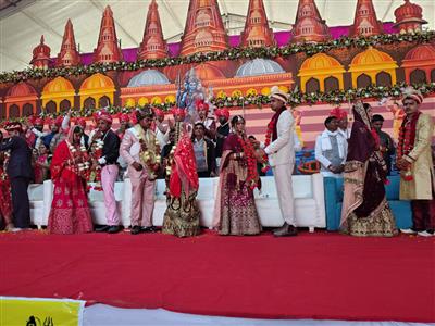 चण्डीगढ़, 16.02.26- : ओम महादेव कावड़ सेवा दल द्वारा करवाई गई सात दिवसीय महापुराण कथा के आयोजन के बाद महाशिवरात्रि के पावन पर्व पर 11 जरूरतमंद कन्याओं का सामूहिक विवाह करवाया। सेवा दल के प्रधान नरेश गर्ग ने बताया कि हर साल वे 11 से 21 कन्याओं का शिवरात्रि के दिन या इसके आसपास सामूहिक विवाह करवाते हैं। संस्था से जुड़े पदाधिकारी अनाथ, जरूरतमंद, असहाय लड़कियों के मां-बाप, भाई-बहन बनाकर उनकी शादी करते हैं। उन्होंने बताया कि नई दुल्हनों को नया गृहस्थ जीवन शुरू होने पर इनको उपहार स्वरूप में घर के सभी जरूरत बेड, फ्रिज, बर्तन आदि सामान दिया गया है। सभी नवविवाहित जोड़ों ने खुशी जाहिर करते हुए कहा कि हमें बहुत खुशी है कि उनकी शादी इतनी धूमधाम से हुई। हमने कभी सपने में भी ऐसा नहीं सोचा था। सेवा दल द्वारा फूलों की वर्षा करके दूल्हे एवं बारातियों का स्वागत किया गया।
